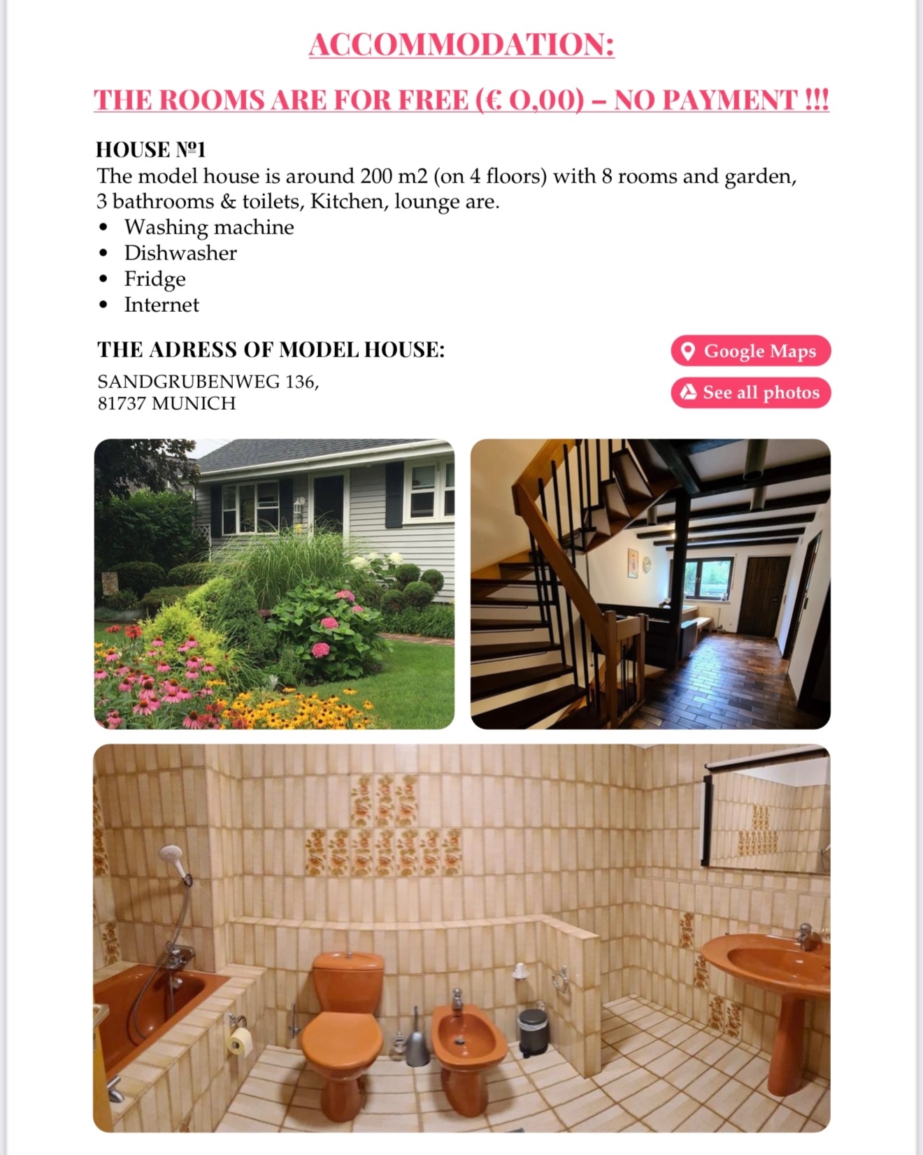 8.50 euro per day so 250 euro per month, wifi, tv, washing mashine, cooker, bedsheets, fridge. It is above the club, possible one girl in one room. Caution 50 euro for the key, given back after finishing the contract. |